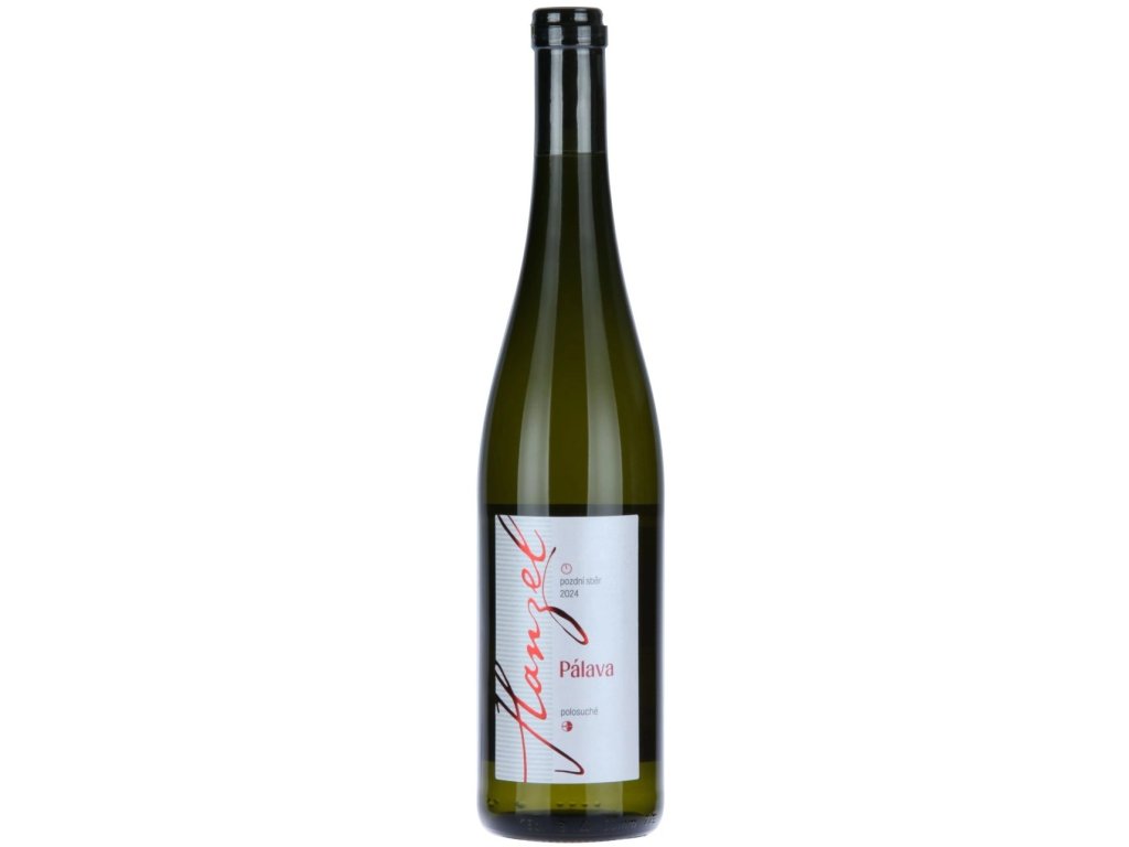 Pálava - vinařství Hanzel. Bílé polosuché jakostní odrůdové víno s přívlastkem pozdní sběr. Ročník 2024.