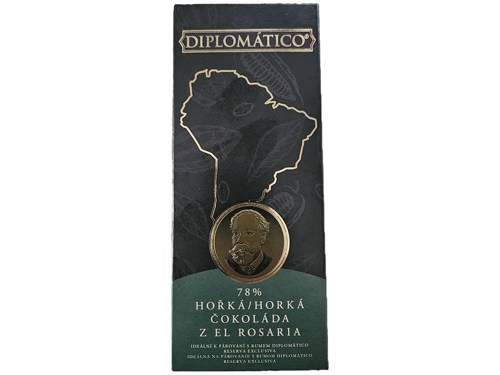 Diplomatico Čokoláda 78% z El Rosario 10ks, hořká, čokoláda je ideální k párování s rumem Diplomatico Reserva Exclusiva. Tato vysoce kvalitní čokoláda byla vyvinuta tak, aby vytvořila dokonalý chuťový zážitek při společné konzumaci s rumem Diplomatico Reserva Exclusiva.
