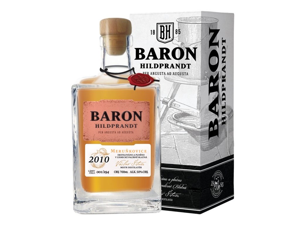Prvotřídní ovocná pálenka Baron Hildprandt Meruňkovice 50 % je vyrobena z výběrových meruněk z jižních Čech. Ruční rodinná malovýroba je zárukou výjimečnosti a díky trojnásobné destilaci jsou odstraněny všechny nežádoucí látky způsobující nevítané chutě či vůně. Opakovaná destilace naopak zintenzivňuje a zušlechťuje meruňkovou chuť pálenky a díky trojímu provedení si stále uchovává 50 % obsahu alkoholu. Ultra jemný a čistý destilát, který zraje 1 rok ve smaltovaných tancích, tak bude pokaždé unikátním zážitkem s žádoucím silným efektem. Vychutnejte si ultra jemnou a čistou meruňkovici, na které pracují ti nejlepší odborníci ze zámecké palírny Blatná.