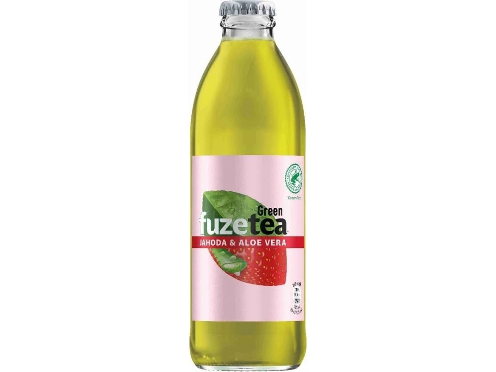 Ledový čaj FuzeTea přináší spojení chutí svěžího zeleného čaje, jahod a aloe vera.