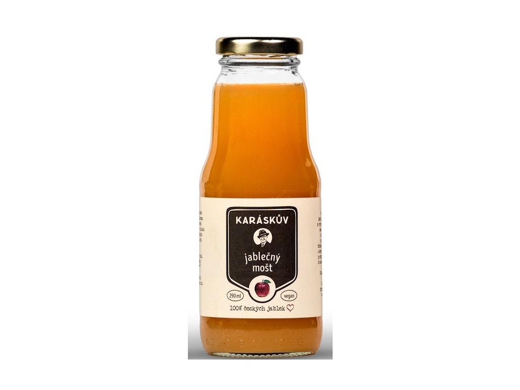 Karáskova Limonáda Jablečný Mošt odrůdový. Vybrali jsme si odrůdu jablek a z ní ten nejchutnější mošt. A protože bude pokaždé ze stejné odrůdy, bude pokaždé stejně vynikající.