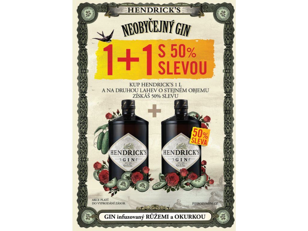 Při koupi 2ks Hendricks Gin 1l budete mít druhou láhev za poloviční cenu.