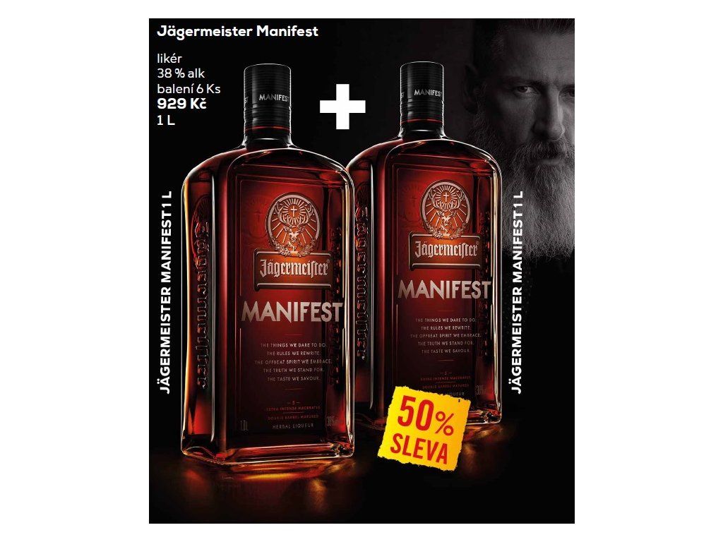 AKCE Jägermeister Manifest 1l a druhý za 50%
