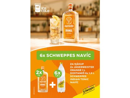 Položka obsahuje Jägermeister Orange 2x1l + 6x Schweppes Tonic 1,5l.