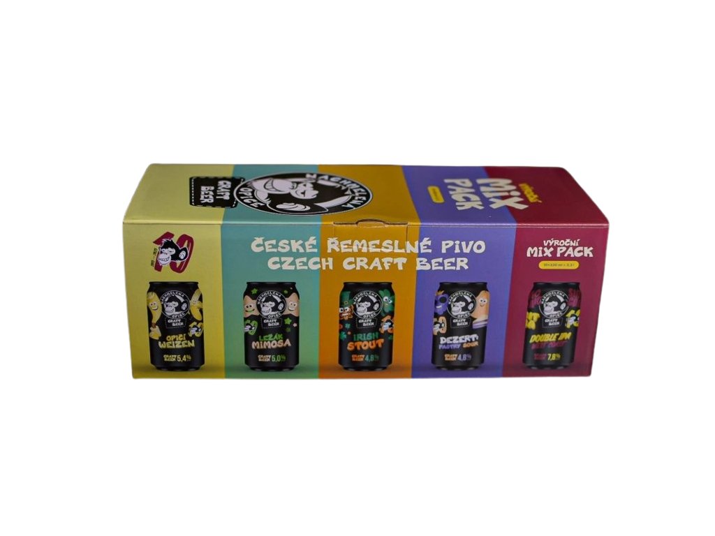 Výroční MIX PACK se skládá z 10 plechovek, přičemž je každá s jiným druhem piva. MIX je složen z našich 10 výročních speciálů a nabídka je velmi pestrá: