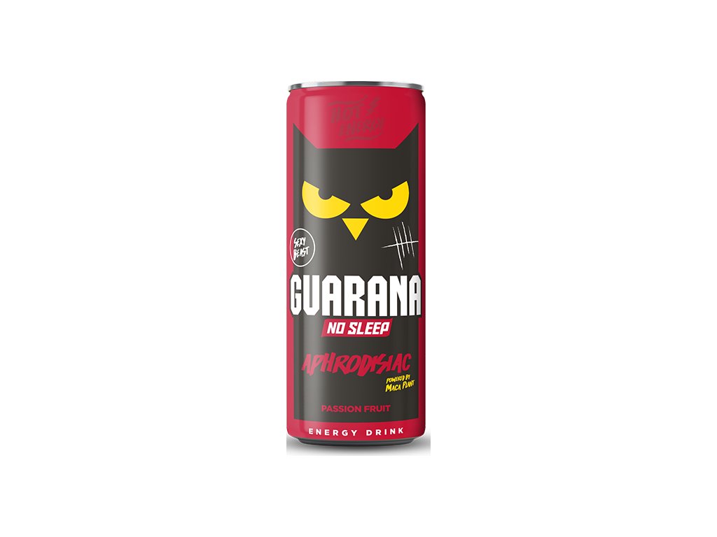 Sycený nealkoholický nápoj s příchutí maracuji s kofeinem, vitaminy a extraktem z rostliny maca. Vysoký obsah kofeinu - není vhodné pro děti a těhotné nebo kojící ženy (max. 32 mg/100 ml).