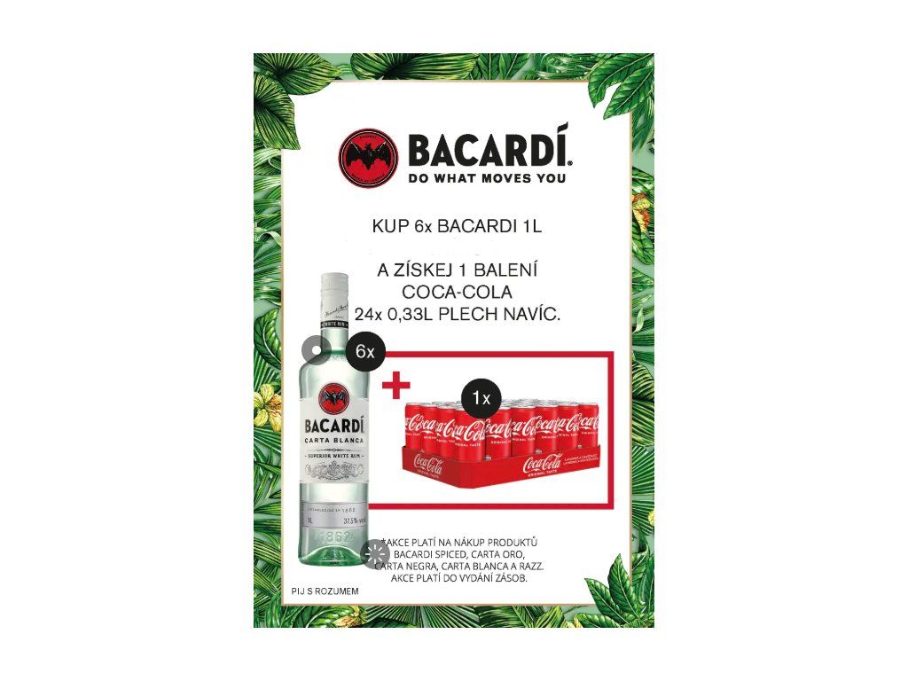 Ke koupi 6x1l Bacardi Carta Blanca získáte nyní Coca Cola plech 24x0,33l.