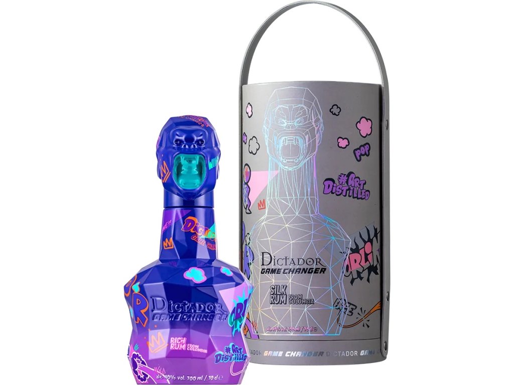 Dictador Game Changer byl navržen vizionářem Richardem Orlinskim, ikonickým francouzským sochařem a DJem, jehož kreativní genialita nezná hranic. Je to moderní mistrovské dílo, vzrušující prohlášení tekuté geniality, estetické krásy a šarmu, která mění svět současných prémiových destilátů. Ikonický tvar láhve Dictador je spojený s brilantní uměleckou vizí Richarda Orlinskiho – uzávěr ve tvaru hlavy Konga, živé street artové výbuchy barev na povrchu láhve – každý detail odráží vášeň a kreativitu.